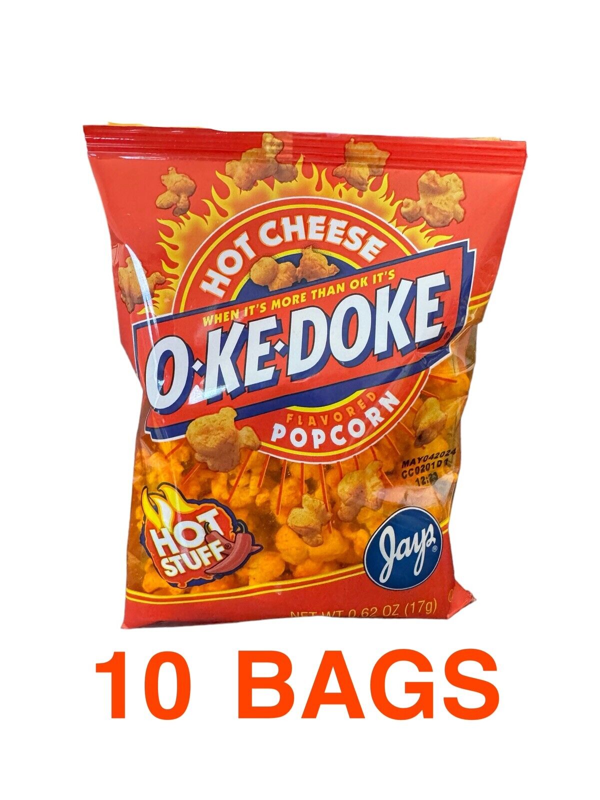 Jay’s OKE DOKE Hot Cheese Flavored Popcorn 10 .625 Bags